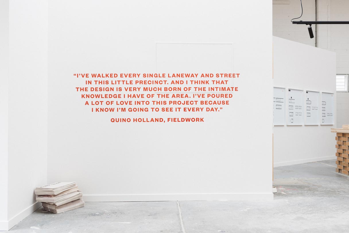 Designed by Fieldwork for Milieu Property, the Barry Street display suite was created as a sales tool for Milieu's townhouse project launched in December 2016. The construction timeframe was 6 weeks and involved a feature engineered timber frame, display podium, replica kitchen and outdoor deck area.