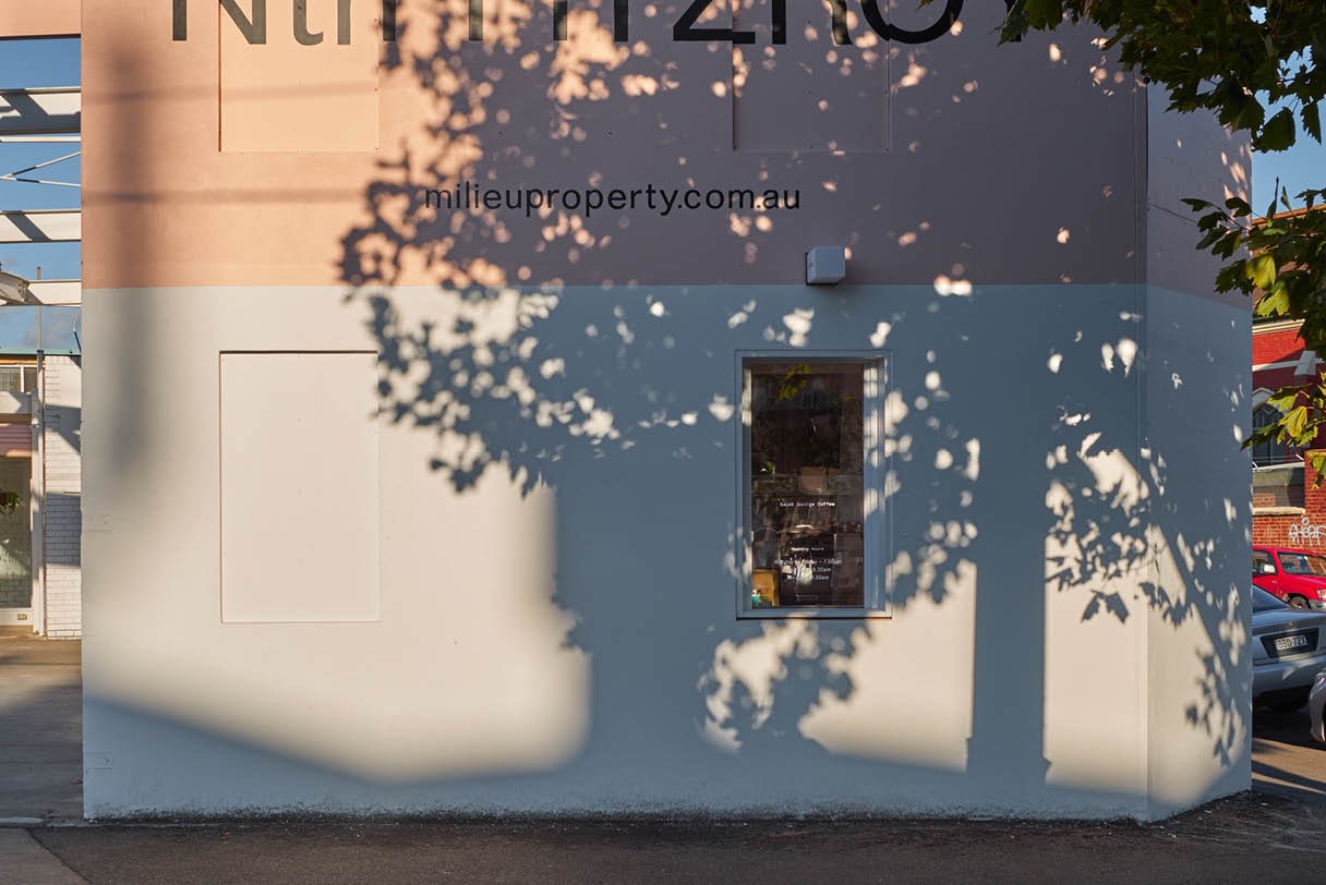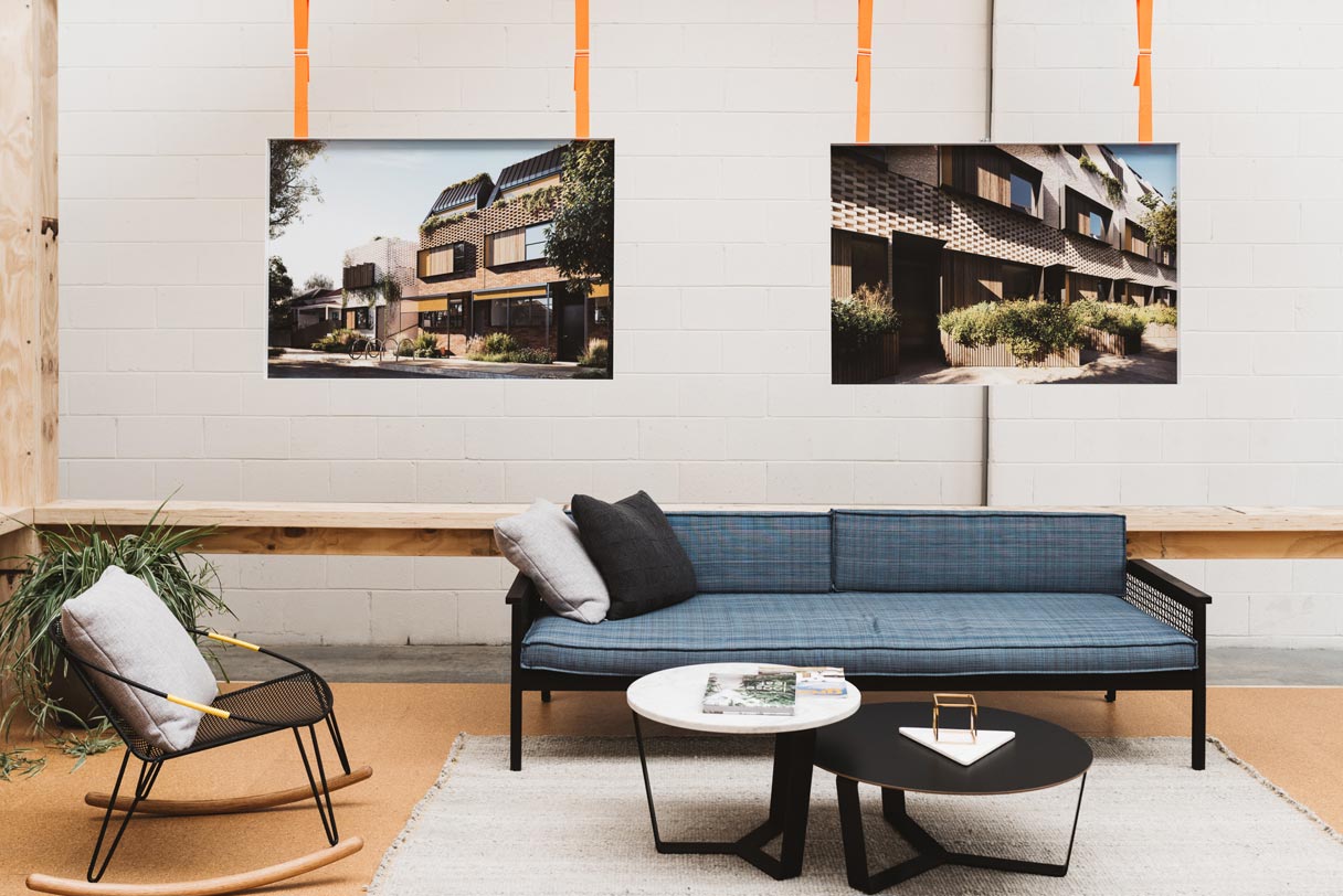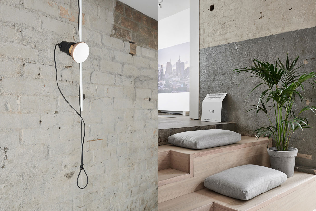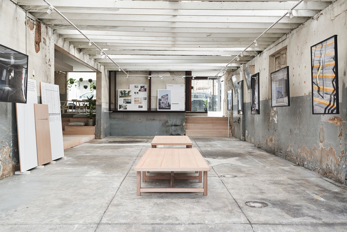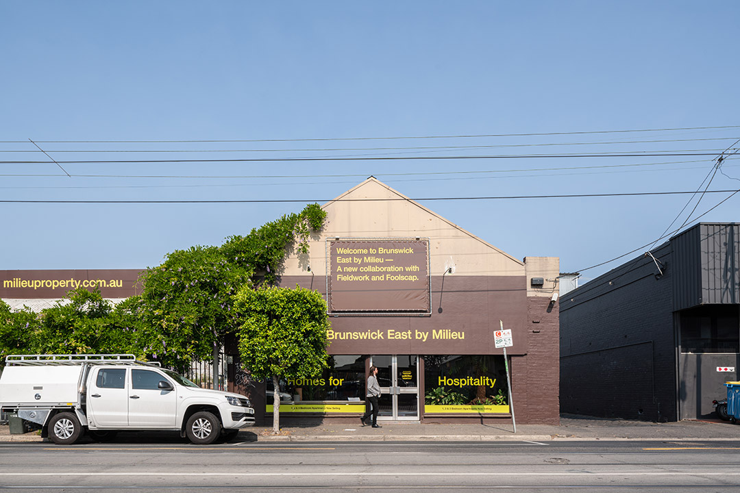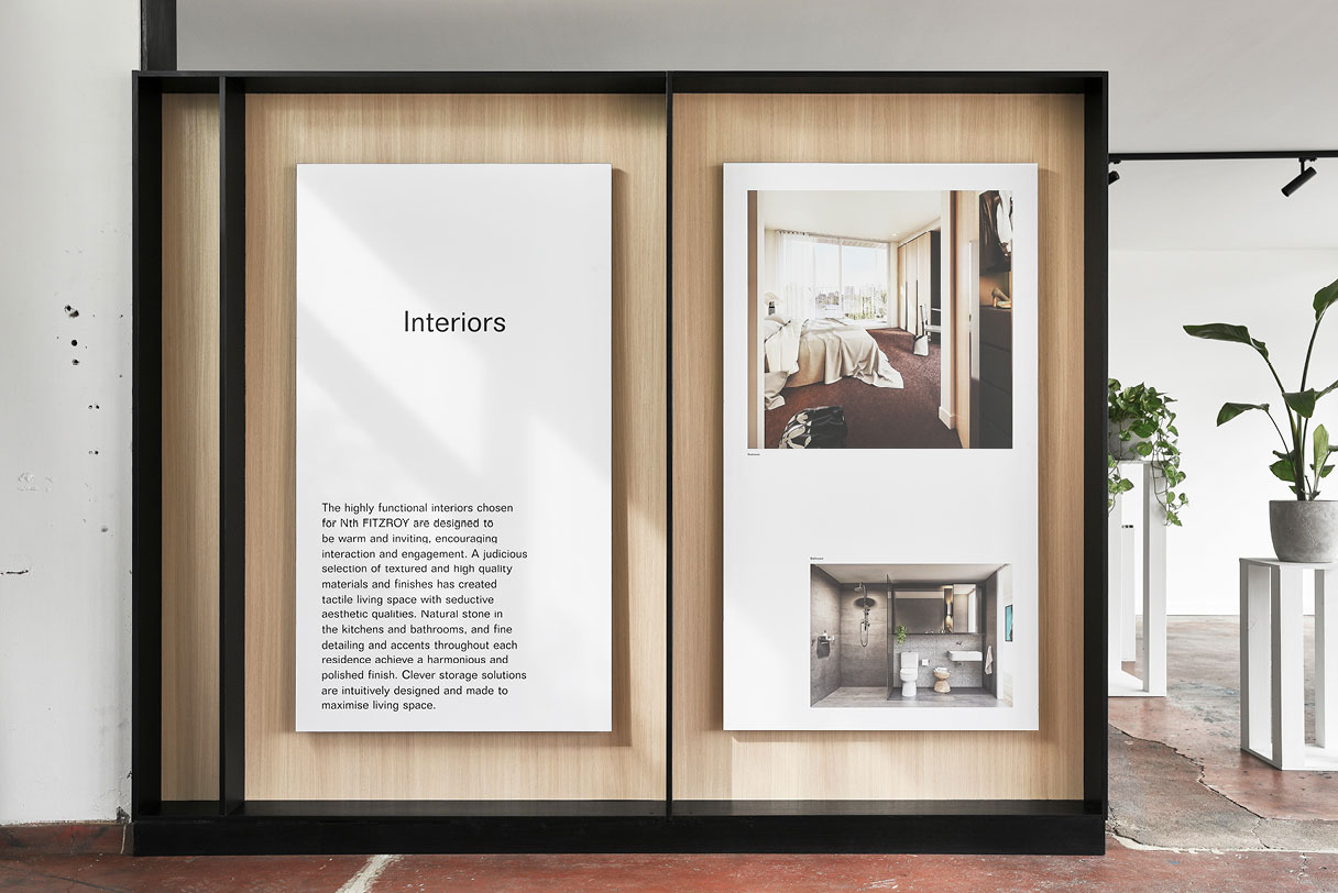 Designed by DesignOffice for Milieu Property, the display gallery doubled as both an exhibition space for local photographers and as a sales tool for Milieu's apartment project in Collingwood. The construction timeframe was 2 months, and featured a replica kitchen, display joinery, and custom bench-seats.