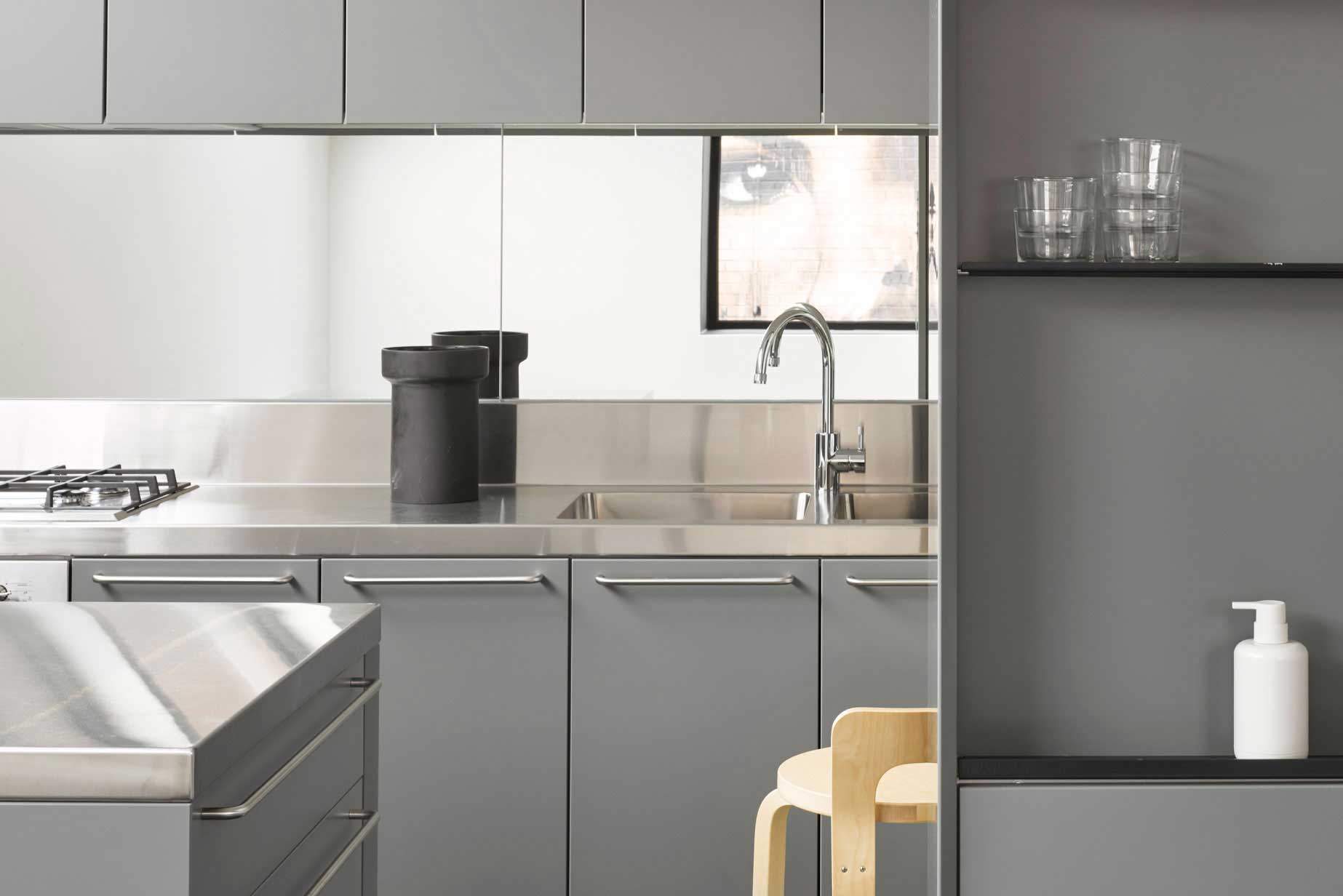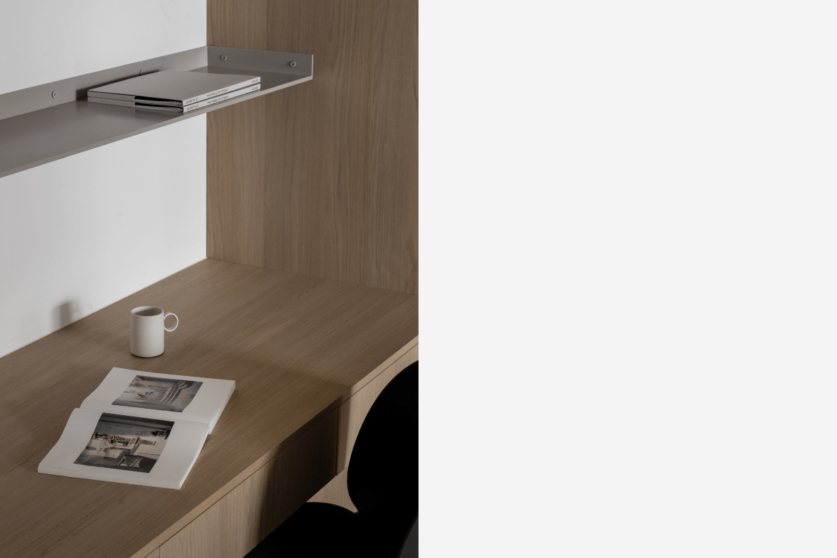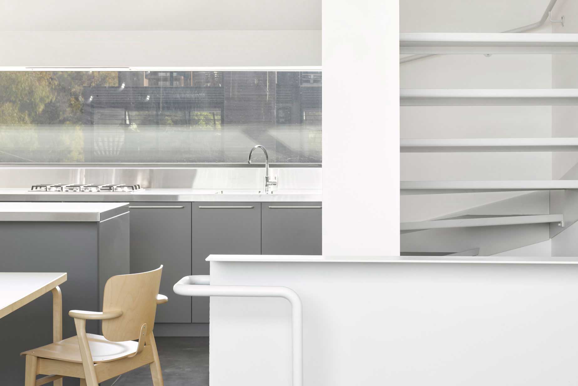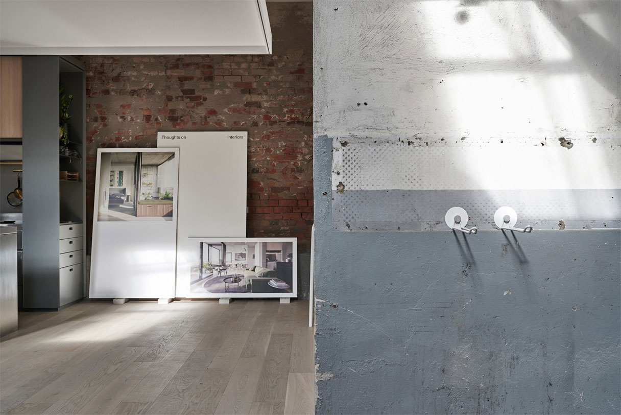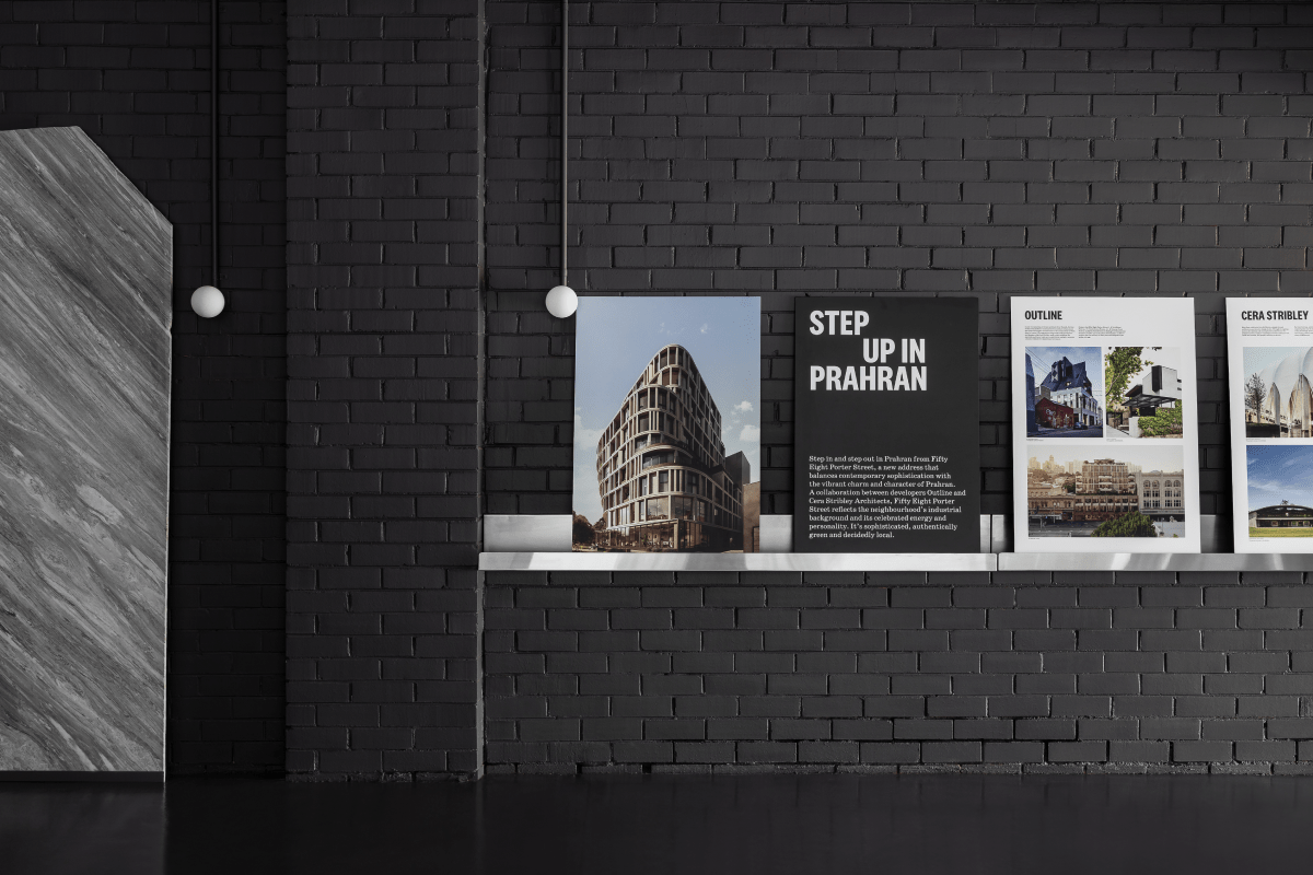 Designed by DesignOffice for Milieu Property, the display gallery doubled as both an exhibition space for local photographers and as a sales tool for Milieu's apartment project in Collingwood. The construction timeframe was 2 months, and featured a replica kitchen, display joinery, and custom bench-seats.