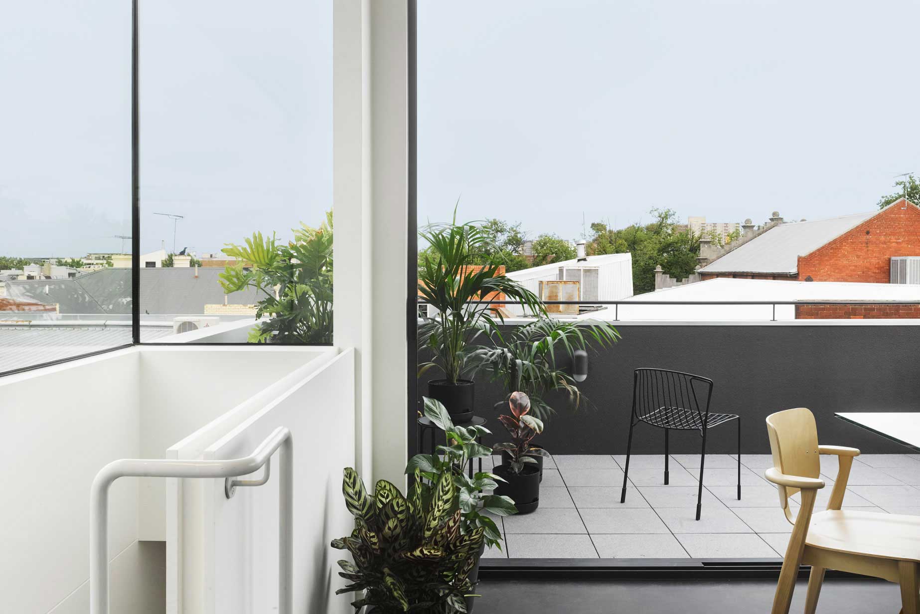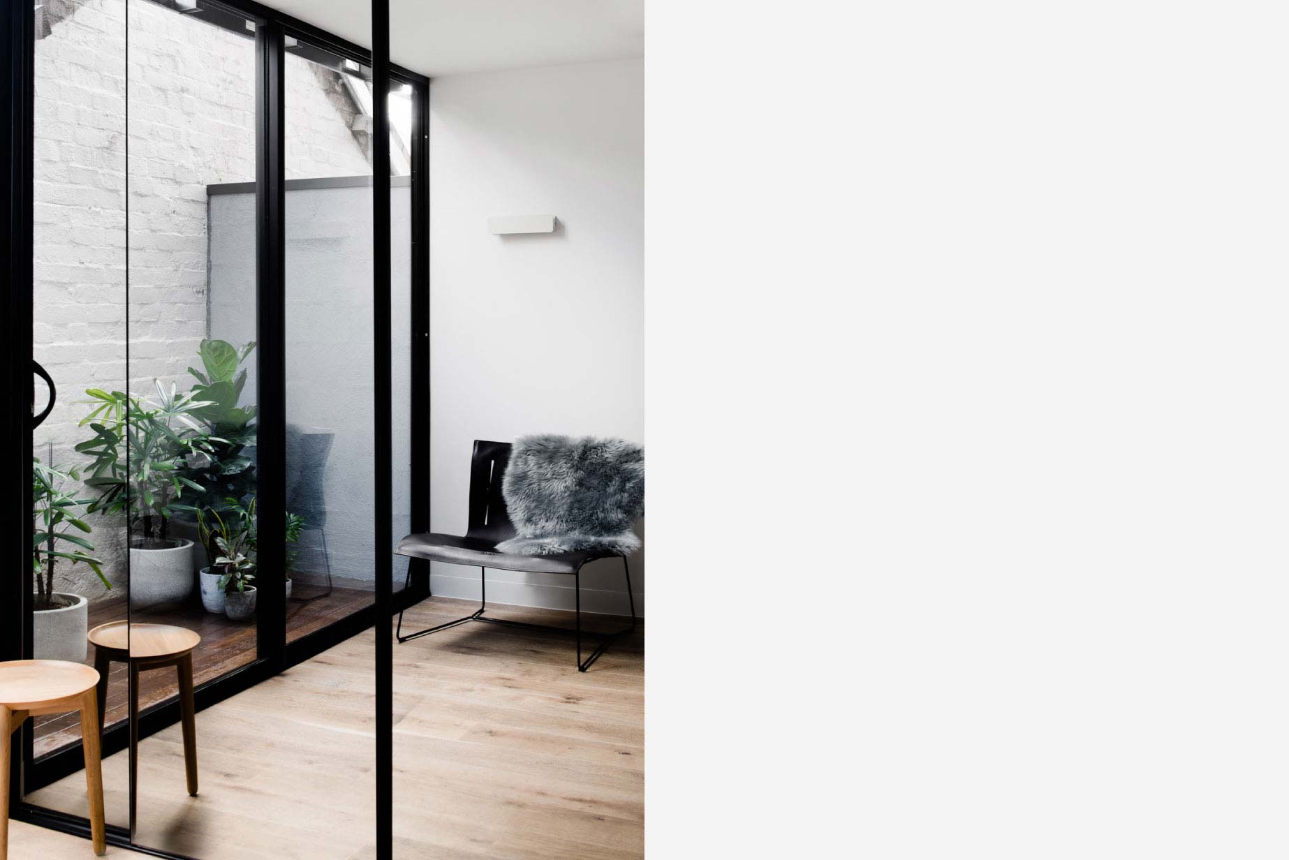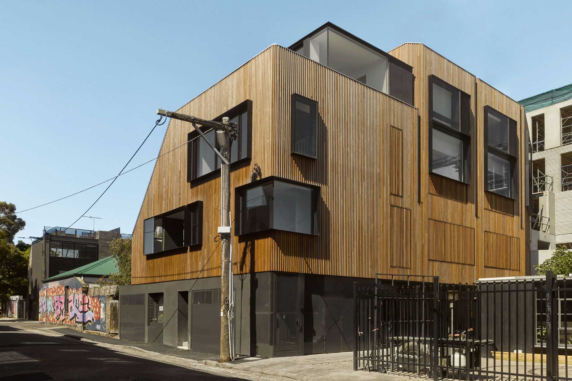 Designed by DKO for Milieu Property and completed in June 2016. The project involved five two-bedroom townhouses designed to give the impression of a contemporary dwelling growing within, and extending beyond, the integrated heritage redbrick façade. Expansive glass panes and a powder coated operable screen contrast against the aged structure at ground level.