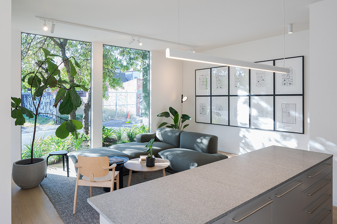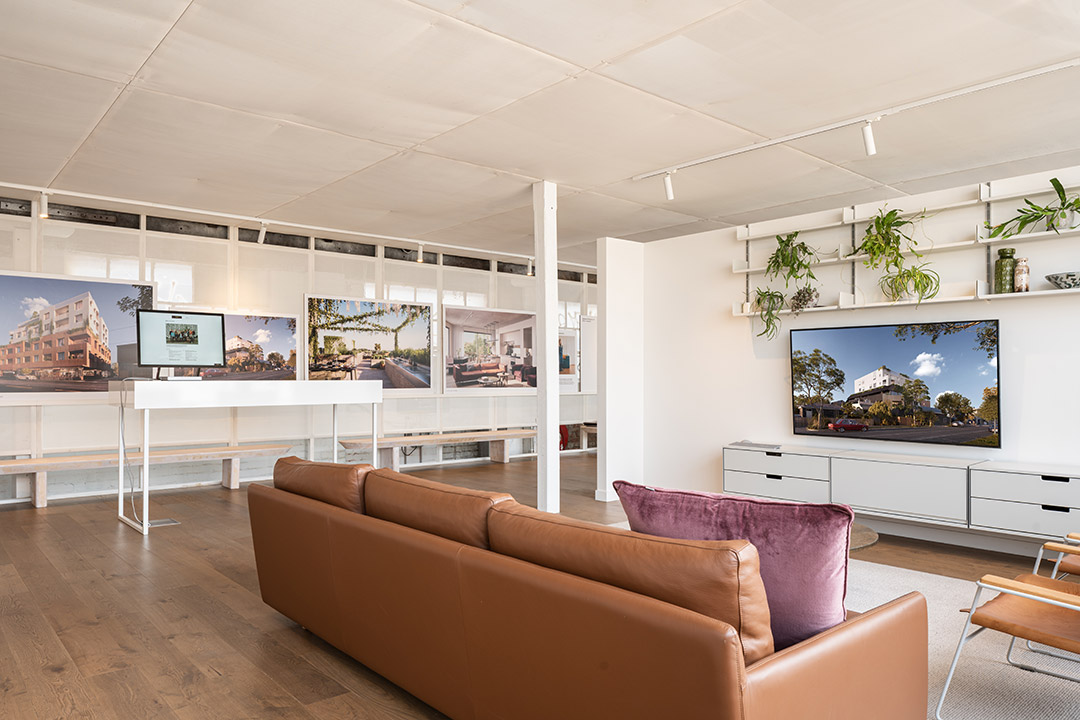The architects, Freadman White cleverly designed the display suite to work within the existing building's footprint. The large display suite featured a complete kitchen and walk in pantry, bedroom, bathroom and large open living and meeting space. The display opened in May 2022.