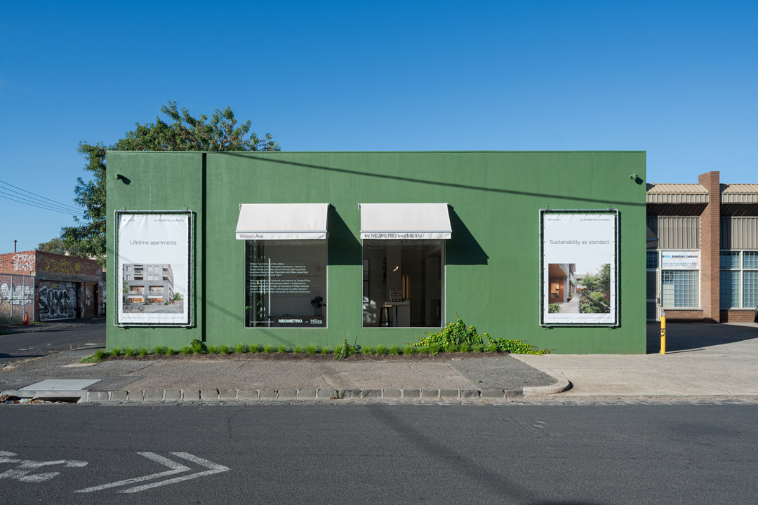 Located within an existing building on site, INC constructed the display suite featuring a podium display area within a mesh clad frame. Opening in late 2019 the display suite was built as a sales tool for Milieu Property's project, Brunswick East by Milieu.